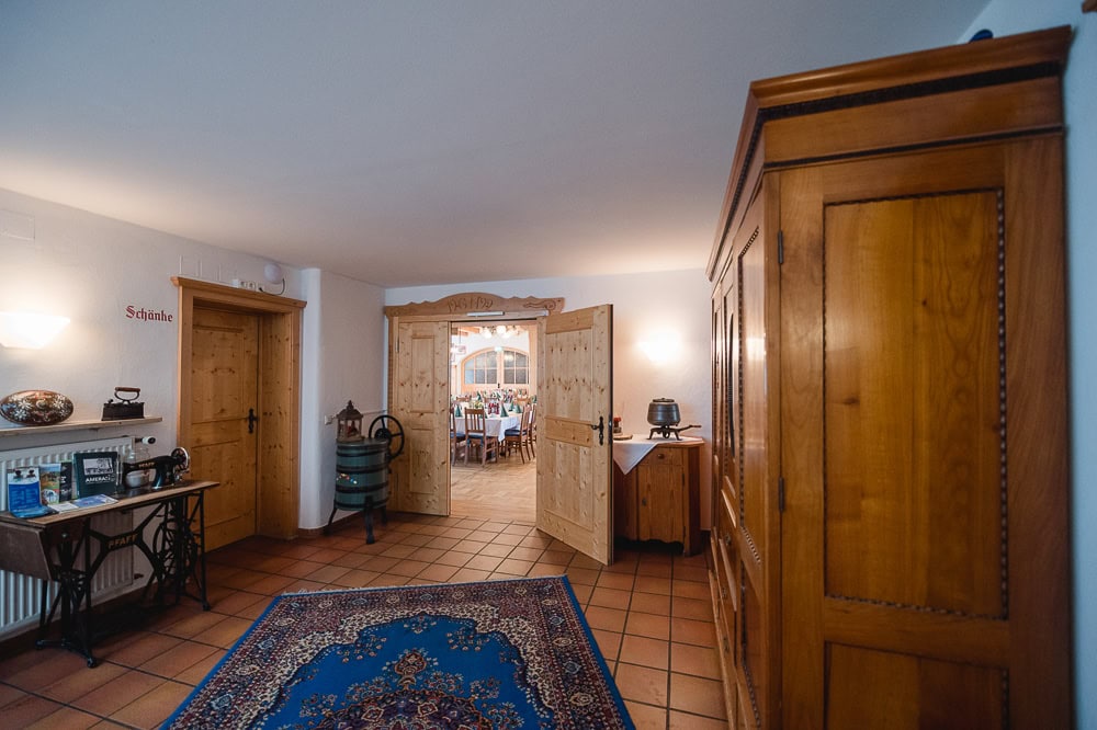 Alte Stube & Stüberl (je ca. 50 Gäste): Für kleinere Gesellschaften oder als Ergänzung bieten diese Räume uriges Wirtshaus-Flair mit viel Holz und Liebe zum Detail – perfekt für das gemütliche Beisammensein oder das „Brautverziehen“.